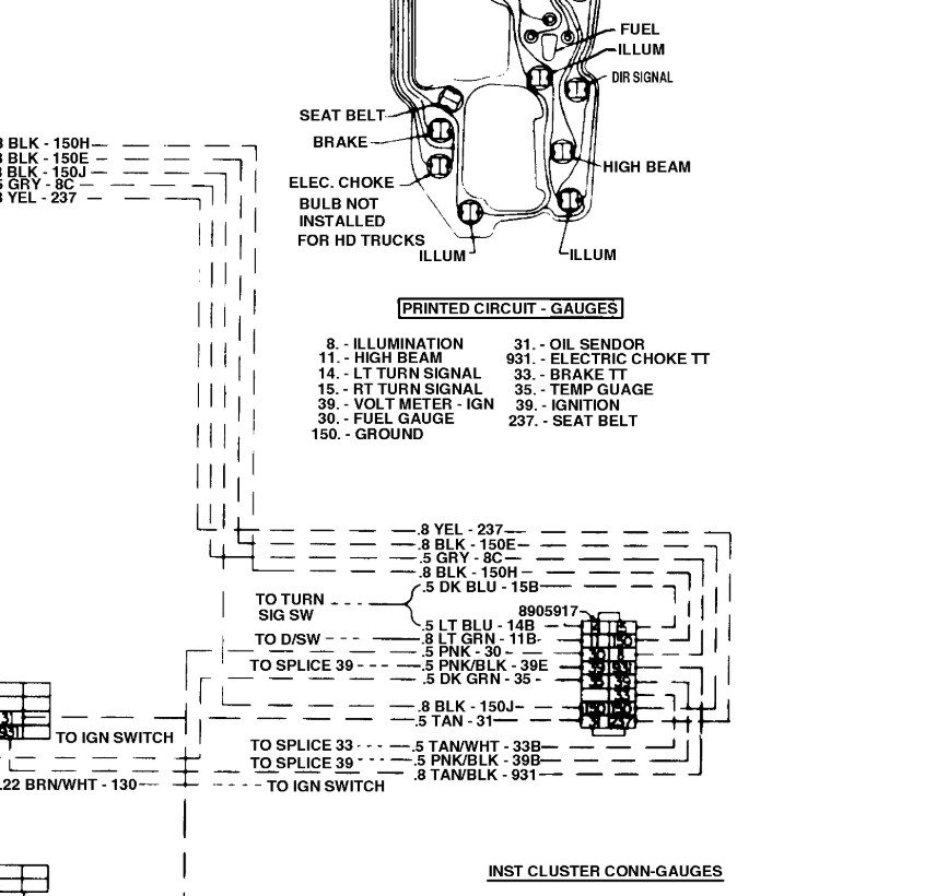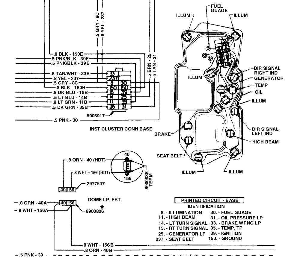 This is what the service info for that year shows. They didn't have the nice layouts they do now. This does show what most of them do for both of the clusters they used. Notice that the layout was changed, it looks like the plug you have is from the second version as it has a yellow wire at the end of the connector. The numbers in the list on the picture image are the circuit codes not wire positions those are in the connector diagram, So that yellow wire is circuit 237 and goes to the seat belt warning light. Not hard to match up but the image is terrible.