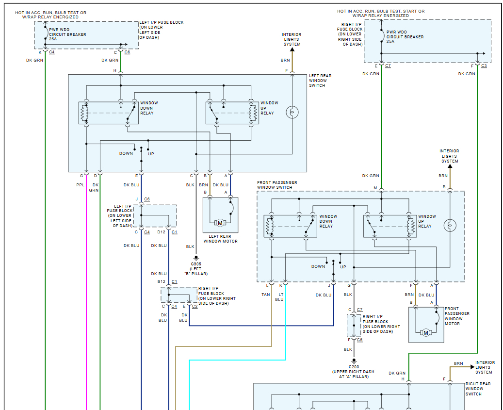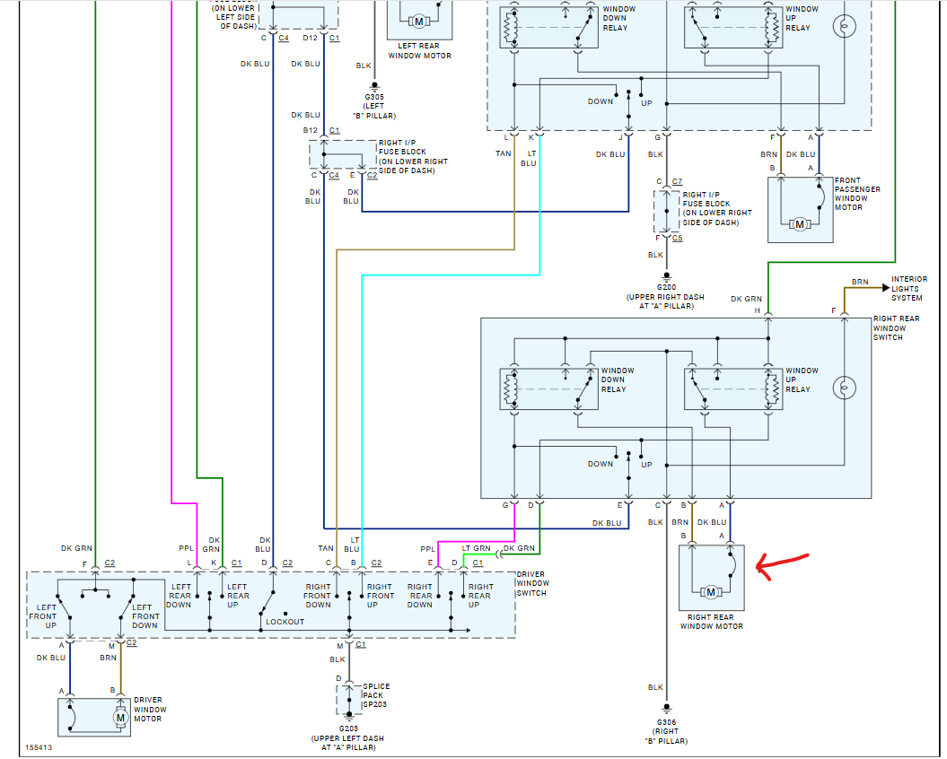 Back driver's side window will only go up not down and it only works with the driver master switch, it doesn't work with the back switch at all other windows working with main switch.