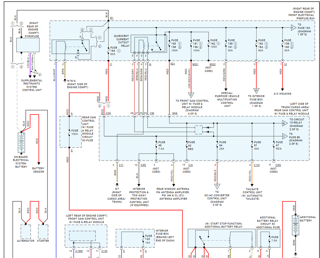 Is there any info on the rear/cargo fuse panel that explains the wiring for the P1-P6 connectors, pinout, and wire size? I need to know where a broken wire goes - only info is color, size and I know it's from P6. But I also need to trace other wires from connector P5, P4 and so on.
