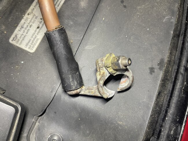 I bought this car as is. When I checked it the battery was dead, so we jumped it to see if it would run and it ran smoothly. Towed it home, put a jumper box on it and it would act if the starter were bad, clicks hard as trying to rotate the motor but the lights on dash flicker and sometimes the connection is lost and then back on. I put a new battery on, negative cable post is broken into half, but I can still place it on the battery post and tighten it a bit, but I noticed while starting it would get hot and get sparky and a very small amount of smoke, so I removed it. Not sure if these cables can go bad as they attach to the transmission as ground don't they? How can I test the cable for issues before removing the starter as a suspect?