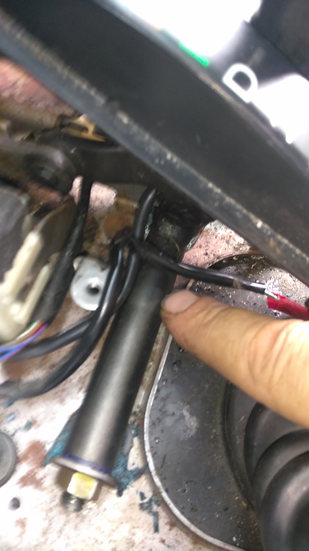 The engine computer is behind the glove box. The wire we're after is listed as black, in plug "E8" but as I said, it only has twelve wires. Look for a black wire in one of the other plugs. With the ignition switch on,