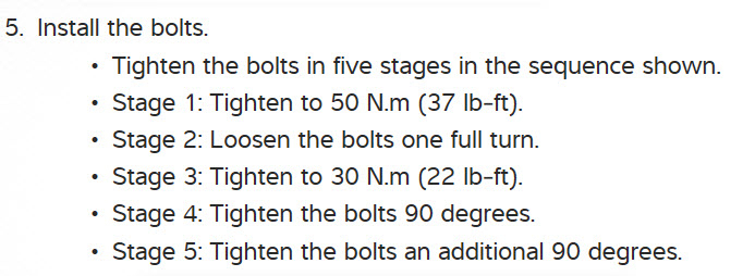 You must use new cylinder head bolts as they are torqued to limit. Also, follow sequence it is a five step process. Also, head gaskets must face forward of engine. See pictures.
