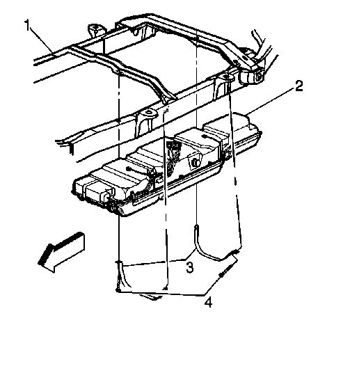 11. Remove the attaching bolts (4) from the fuel tank strap.