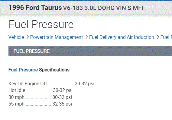 Let me know your thoughts on the converter. Also, let me know if you are comfortable performing the checks above. You will need a fuel pressure gauge, but most parts stores will lend one to you. If you look at the pic below, I provided the manufacturer's fuel pressure specifications.