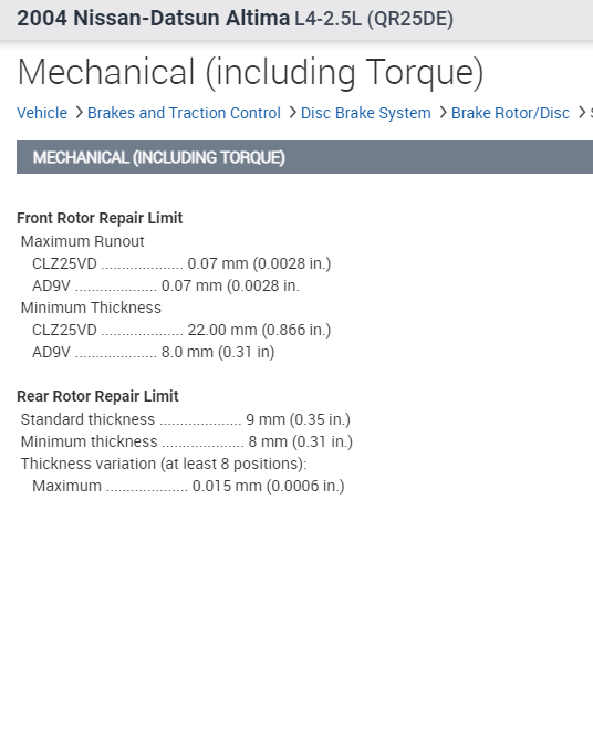 Here's my question. I am being told by the shop that the rear rotors need to be replaced. The spec on the car is for.381 and they are at.415 and.413. Should I replace the rear rotors now or wait.
