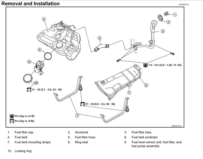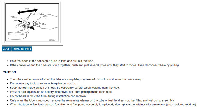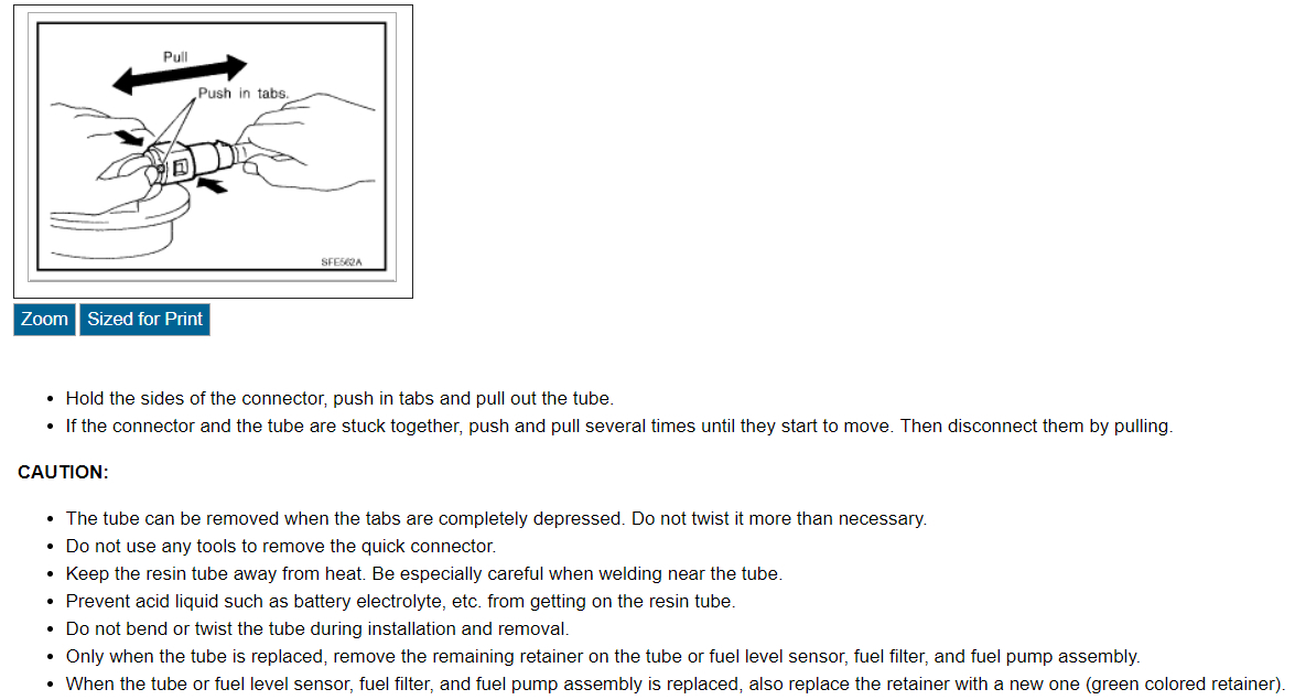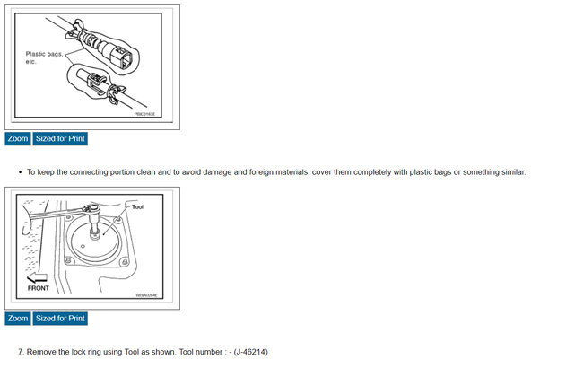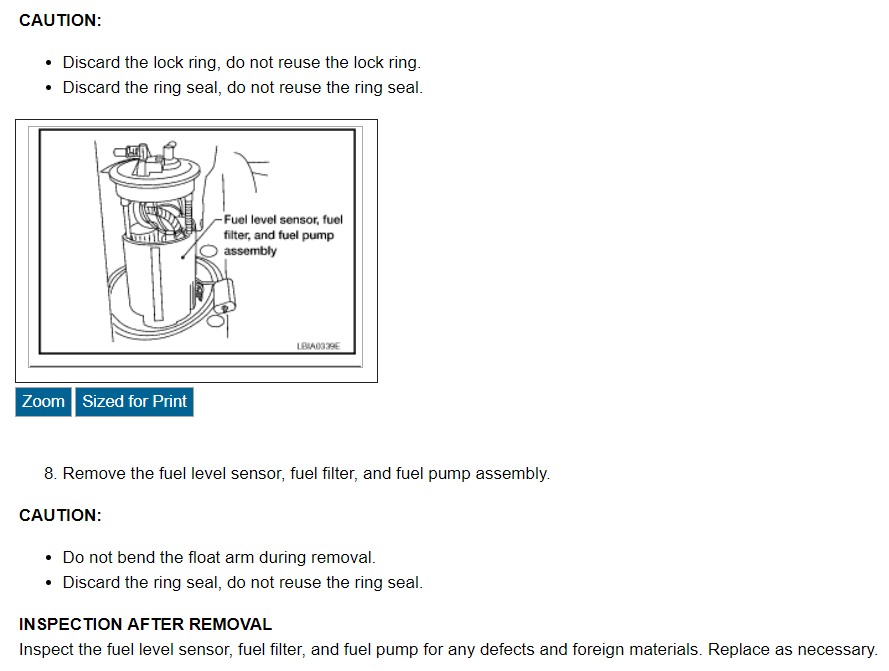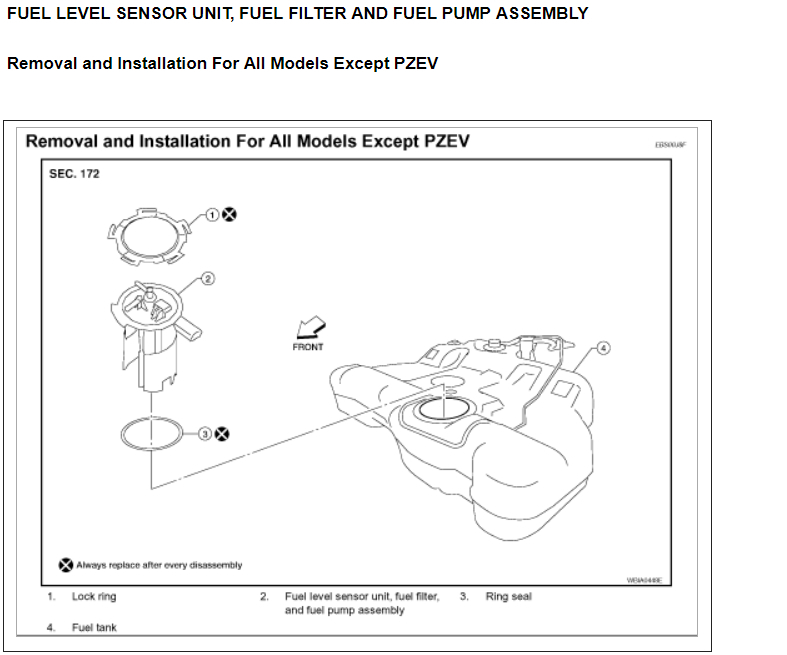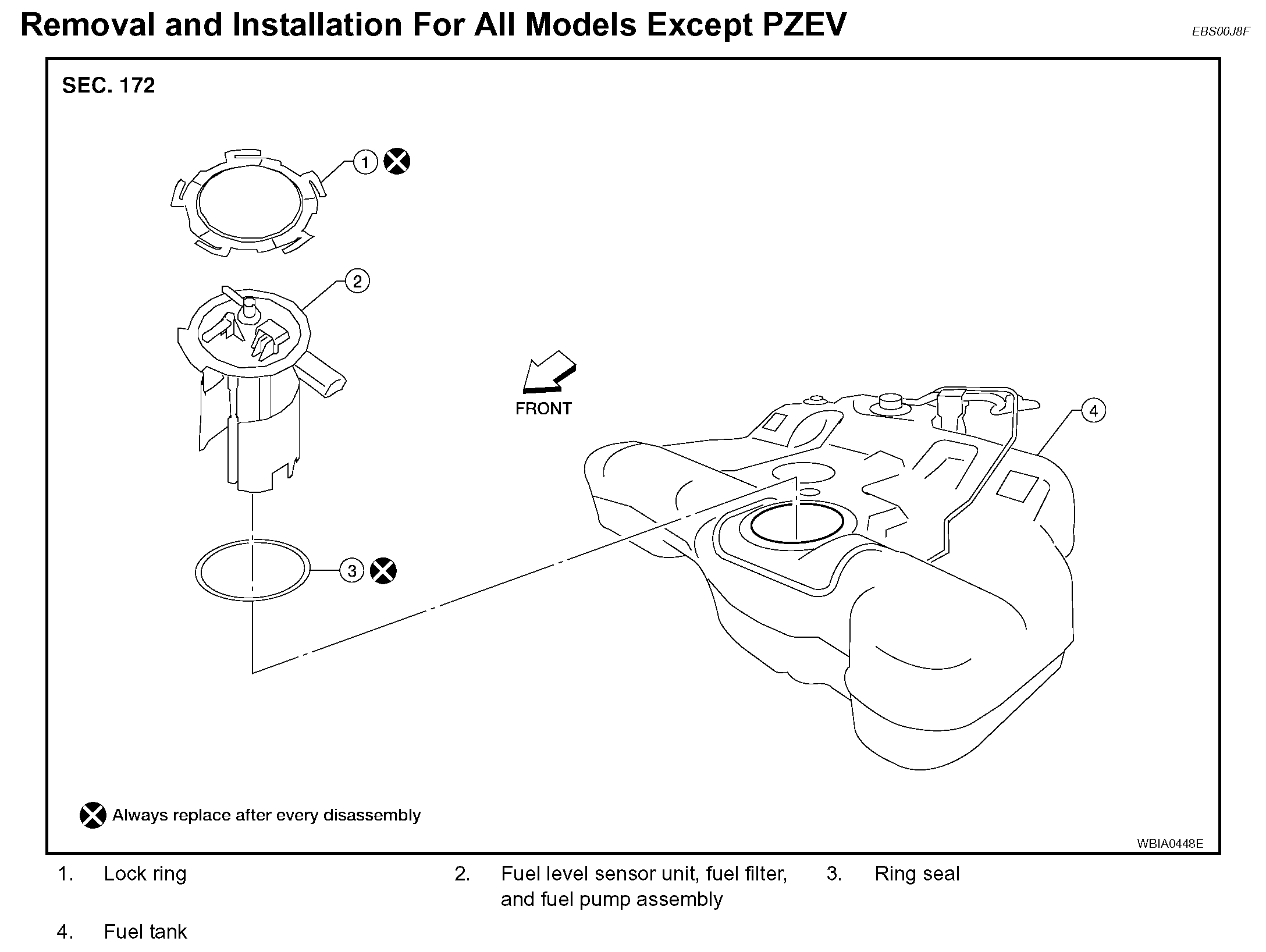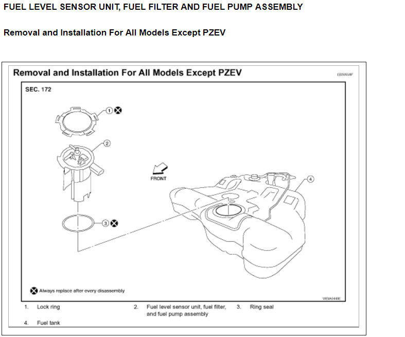 - When the tube or fuel level sensor, fuel filter, and fuel pump assembly is replaced, also replace the retainer with a new one (green colored retainer).