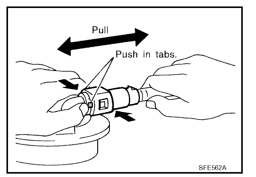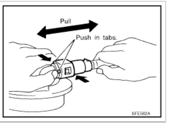 - Hold the sides of the connector, push in tabs and pull out the tube.