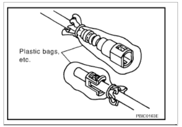 - To keep the connecting portion clean and to avoid damage and foreign materials, cover them completely with plastic bags or something similar.