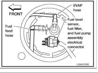 - Only when the tube is replaced, remove the remaining retainer on the tube or fuel level sensor, fuel filter, and fuel pump assembly.