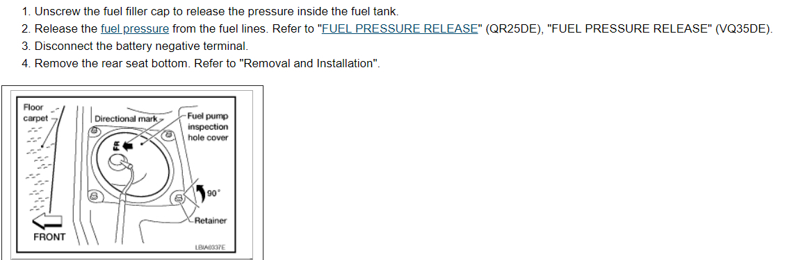 2. Release the fuel pressure from the fuel lines. Refer to "FUEL PRESSURE RELEASE".
