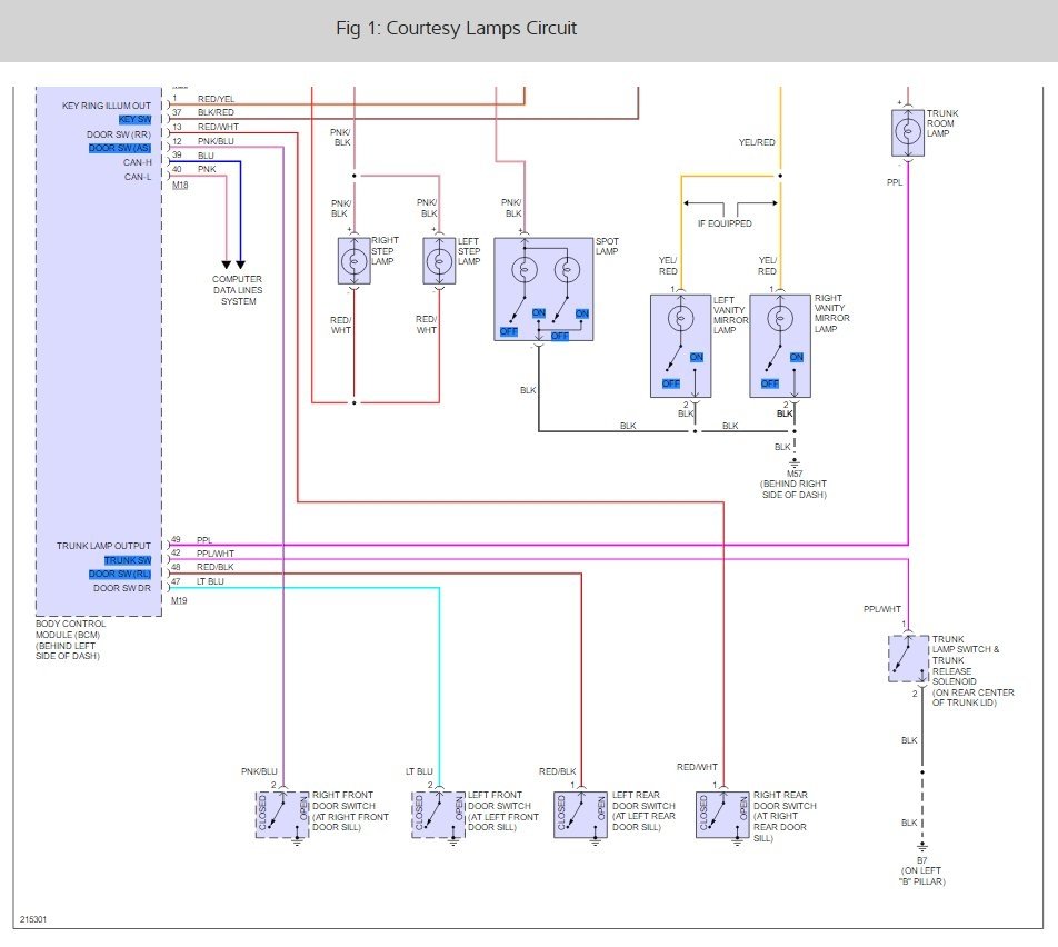 the interior lights, map lights, and door chime do not work have checked fuse cant find any labeled for interior lights all test good under dash and under hood. Checked for power none to light sockets all other electrical seems to be working door locks, windows, horn, dash lights, head lights and running lights. The key remote is not working either battery checks good.