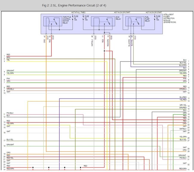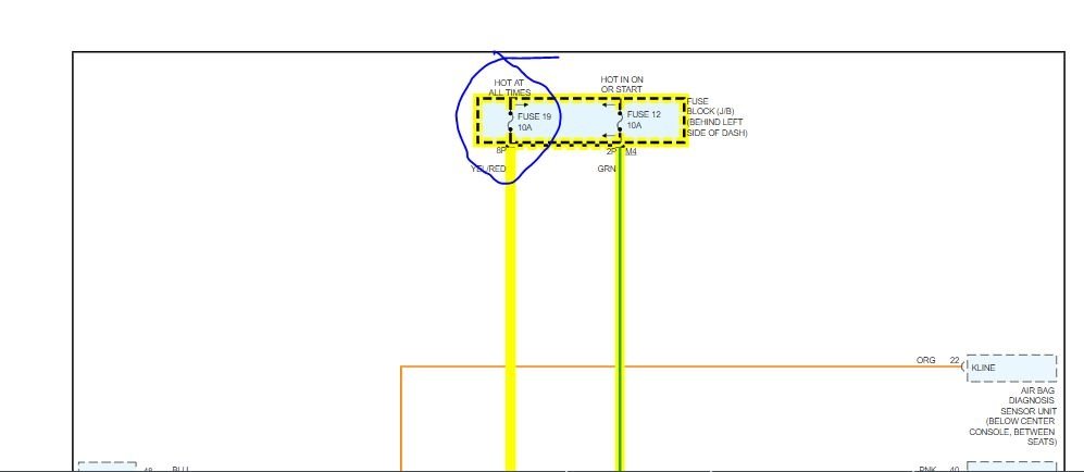 harness connector terminal "a" (Black/Red wire) and ground. See Fig. 39. If battery voltage does