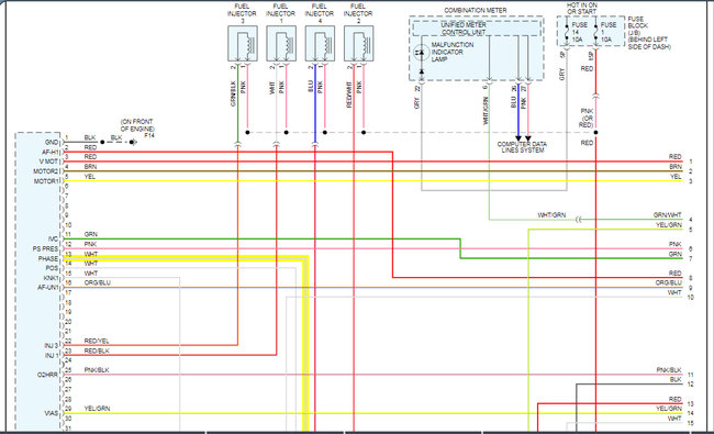 ohmmeter, check for continuity between ECM harness connector terminal No. 1 and power