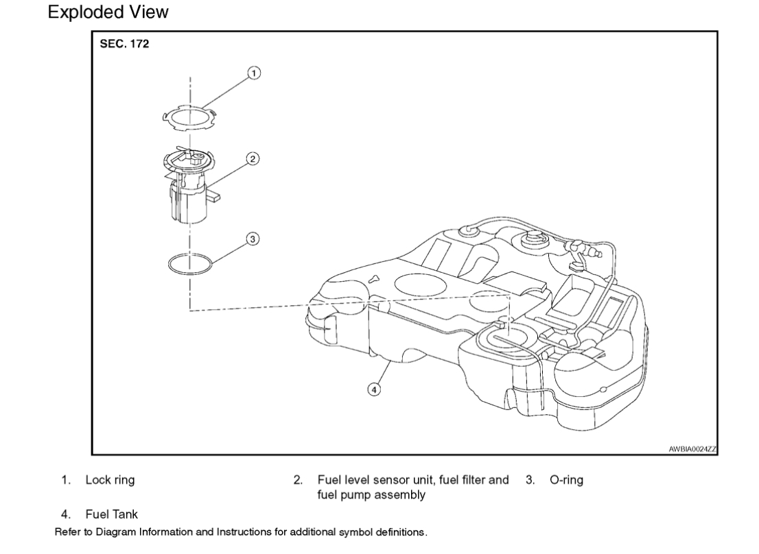 - When the tube or fuel level sensor, fuel filter, and fuel pump assembly is replaced, also replace the retainer with a new one (green colored retainer).