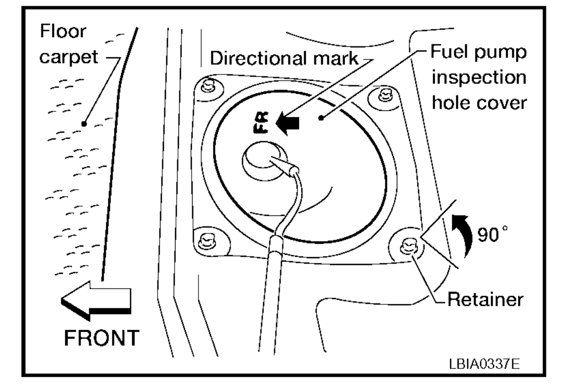 5. Turn the four retainers 90 ° in a clockwise direction and remove the fuel pump inspection hole cover.