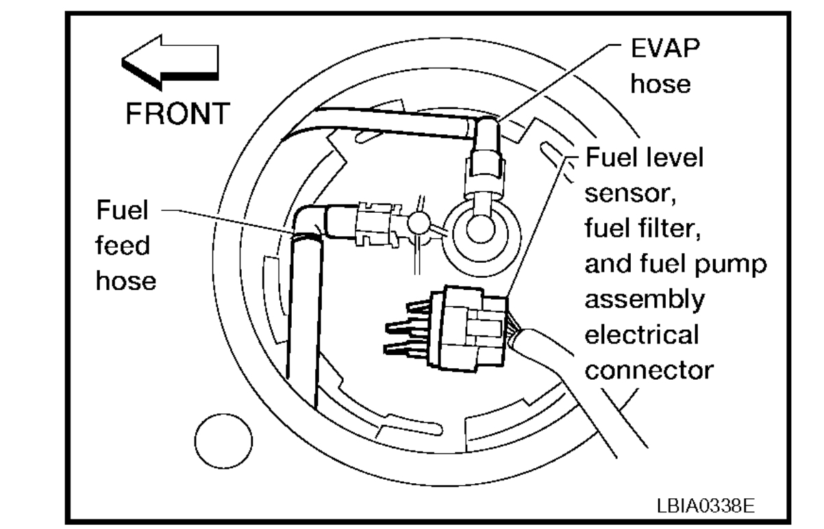 - Only when the tube is replaced, remove the remaining retainer on the tube or fuel level sensor, fuel filter, and fuel pump assembly.