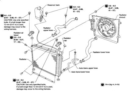 After repairing or replacing radiator, install all parts in reverse order of removal.