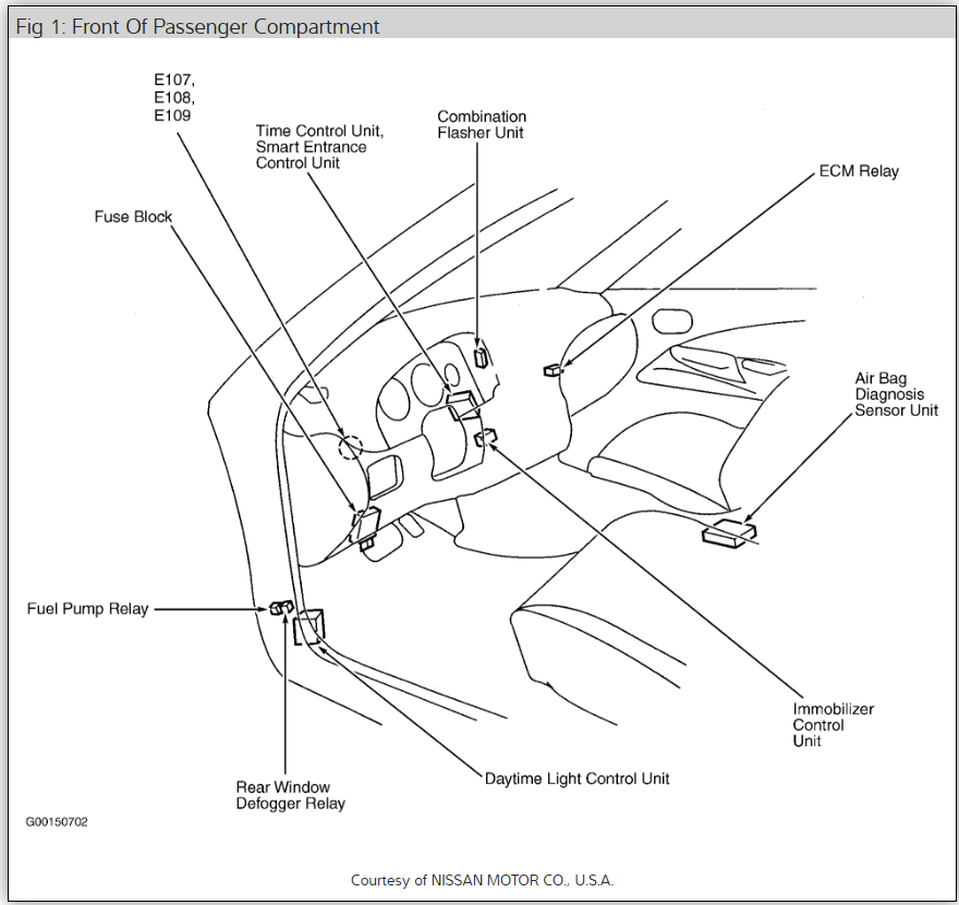 I just bought this car and am looking to get fuse and relay diagrams as the cover is missing off the fuse box and the owner's manual I downloaded today has no mention of where and what amperage the fuses should be and where they should be. I have searched the internet all day. I tried automotive search engines, automotive forums, every little trick I could think of. To no avail. I found a couple of pics but either wrong Nissan model or wrong year. I don't have any credit/debit bank cards (my choice) so I can't get answers unless I pay. Boy whatever happened to just helping people out like the good ole days. Everythings about money now even advice.