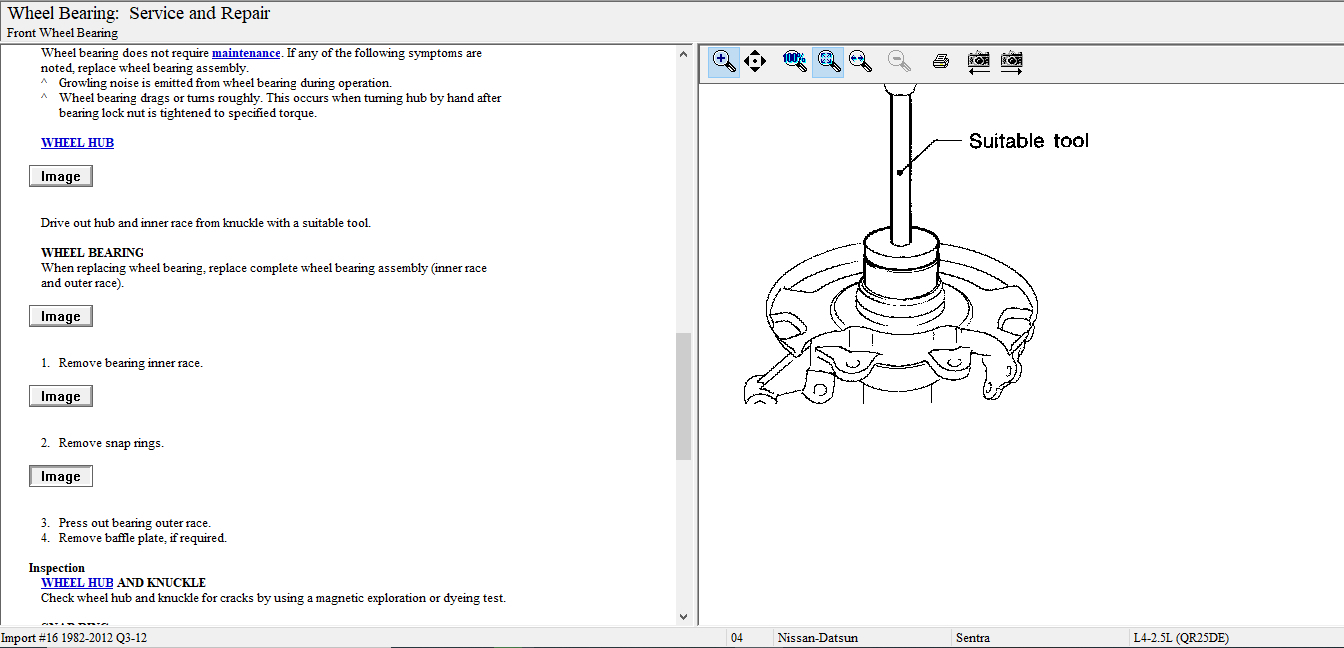 Went to nissan for bump bump bump sound as if I have a spot on a front tire and was told it was a tire problem. Went to sears they said I needed struts which was causing poor wear. I still hear the bump. They said it is a wheel bearingon drivers side please advise.