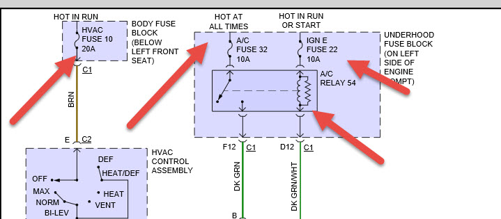 Van lost all power and would not start or turn over. Had a shop diagnose a burnt fuse box relay which melted part of the box so they replaced the entire fuse box. Now everything works except the a/c. I have 12 volts and ground to the a/c fuse, relay and low pressure switch. I have ground to the compressor wire but do not have 12 volts when a/c is turned on. As far as I can tell the dash switch works because the idle is raised when I turn it to a/c. I checked all connections to new fuse box and everything seems to be good. Trying to repair myself cause the shop that repaired it is over an hour away( I broke down on the road ). I had no issues with the a/c before this repair. I tried jumping out the low pressure switch. I connected a gauge to system and it has refrigerant in it. Next I was going to try and bring 12 volts to directly to the compressor to see if the clutch engages. Thank you very much for your time.