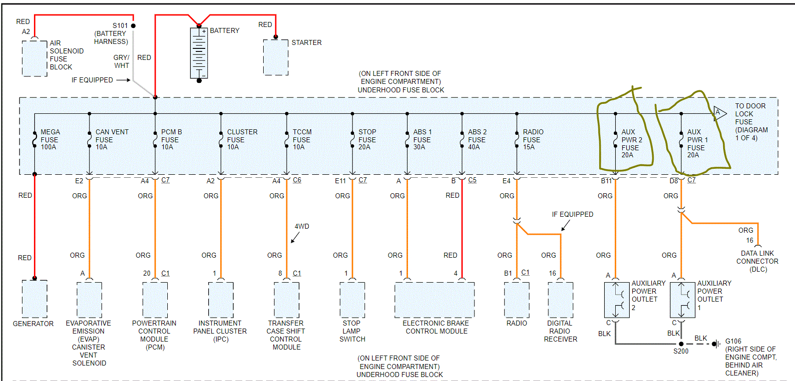 I lost aux power to the hole aux. All 4 fuses are good but no power to any of the 4 fuses. All wiring is good. All fuses in fuse box are all good and working good just no power to cig liter and did used a light tester on all fuses and the 4 around the aux1 don't work at all can't figure it out. As to why there is no power to them 4 I'm stumped everything around and underneath the truck looks good all grounds appear to be grounded good. What else can I look for?