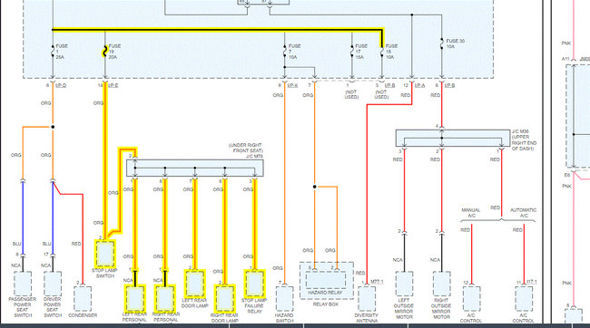 I have no brake lights I've checked all the fuses that I knew of the under – fuse box and under hood fuse box the fuses are good. But there is no power at the fuse under the dash for the brake lights. The hazard lights also do not work. All bulbs are good, brake switch is brand new. Is there any relays that go to the brakes that I might check? Do you have any other ideas where I should look?