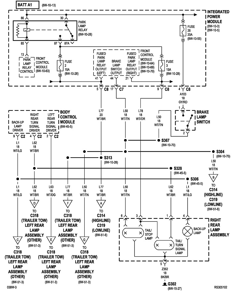 If none of the three brake lights work, the best suspects are the brake light switch and fuse 26 in the power distribution center under the hood.