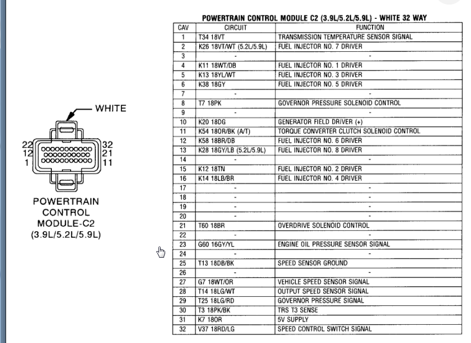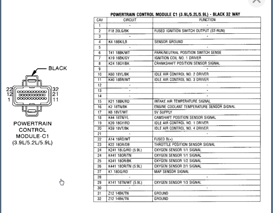 Below are the PCM connector views which we will need to find the specific circuit once we know what connector it is.