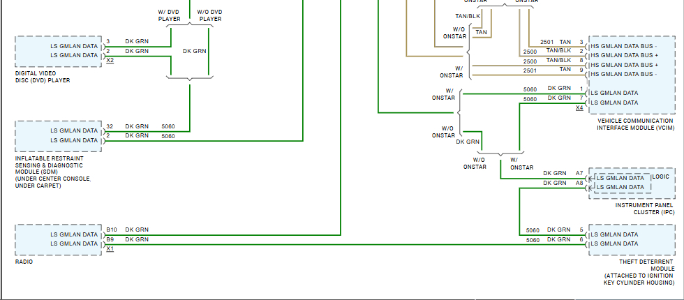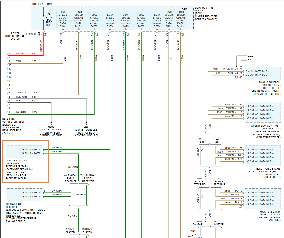 This is the vehicles data network diagrams, top and bottom, in the 1st one, the Remote Control Door Lock Receiver module is marked in the orange box, the Dark green wires are the GMLAN low speed network wiring. These modules are located in different places in different models. So, if the locksmith could not communicate with only that module, or the entire network makes a big difference. Are you having any other issues with the vehicle?