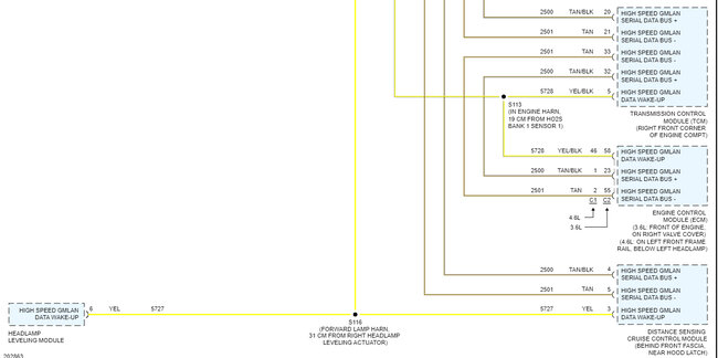 Diagrams 3 and 4 go together and 5 and 6 go together, and you can see that's the entire data network for the vehicle. The 2 splice packs being on diagram 5.