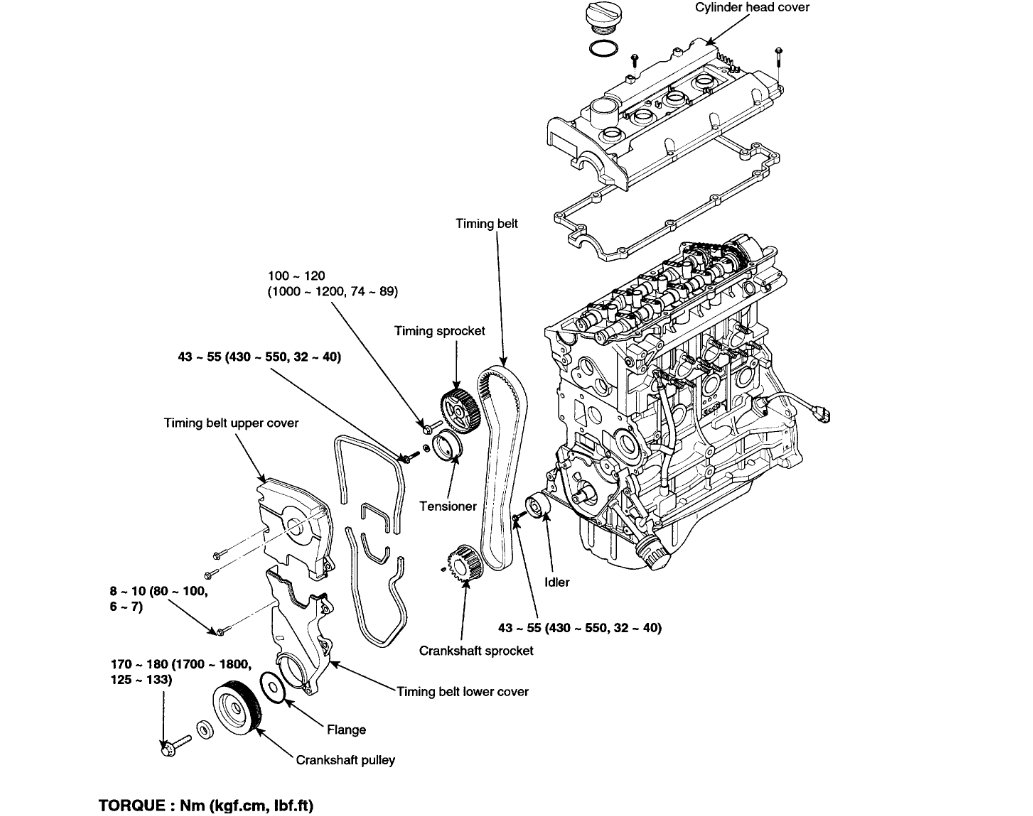 b. Turn the crankshaft pulley one revolution (360°) and align the groove with timing mark "T" of the lower timing belt cover.