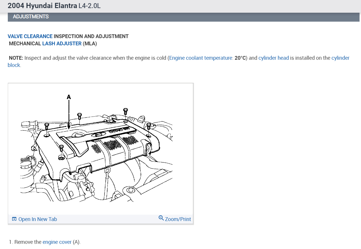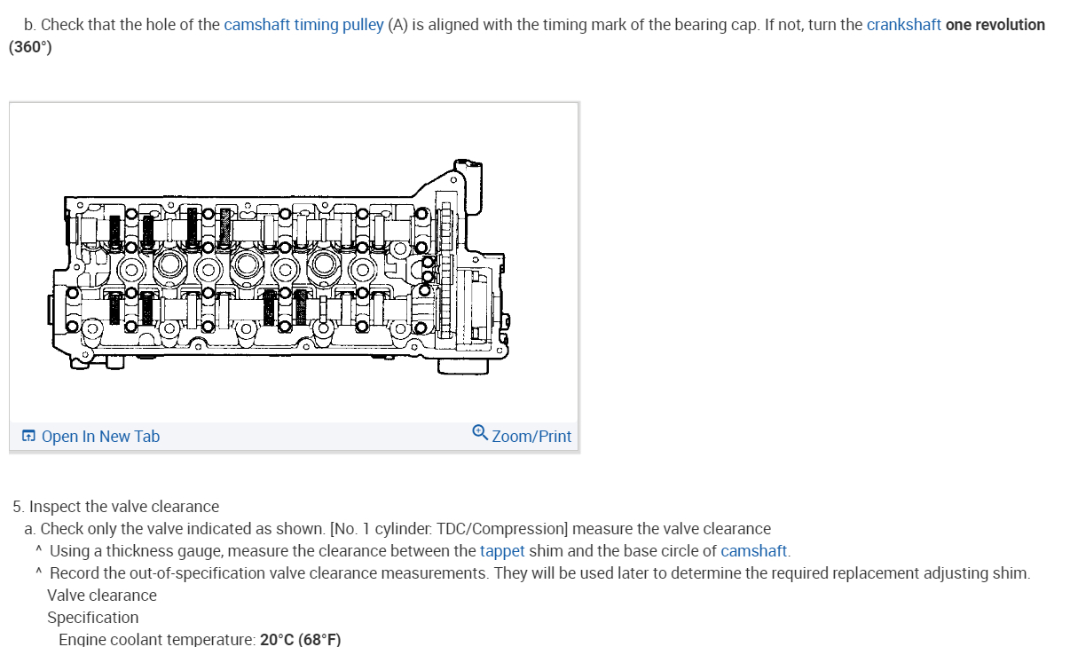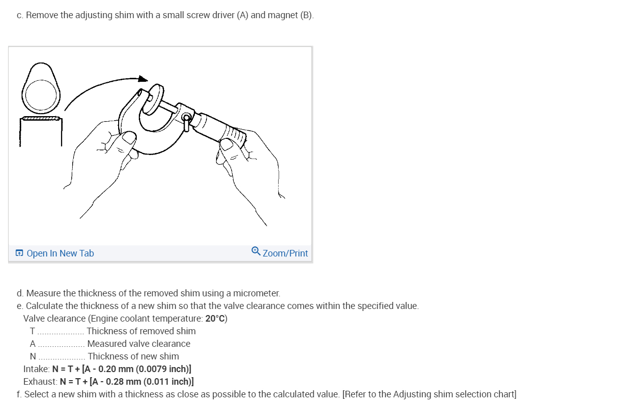 Record the out-of-specification valve clearance measurements. They will be used later to determine the required replacement adjusting shim.
