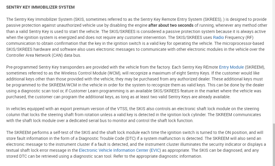 If so, the buttons are a different system then the SKIS system. This system is only used by the WCM/SKREEM module to send the signal to the PCM that the key is valid. The buttons on the key are part of the passive entry system.