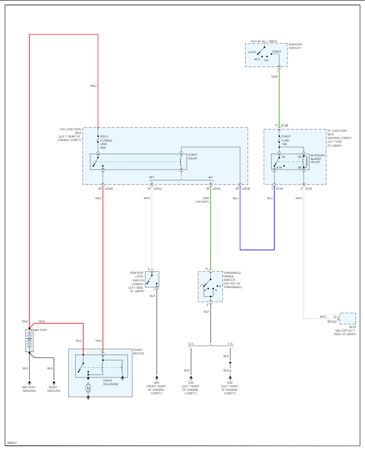 Next we need to check voltage at the starter trigger wire and power feed wire. You should have 12 volts when cranking the engine on the trigger wire so if you don't, and don't have codes and the theft light is not on then we need to find out if there is a relay or fuse issue.