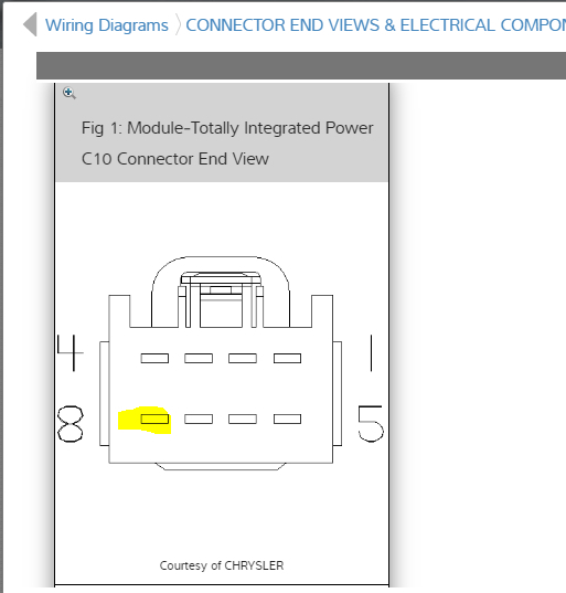 If you find there is no power, let me know. We will need to check for power at connector 10 pin 8 at the TIPM. I you feel comfortable, do that as well and let me know the results.
