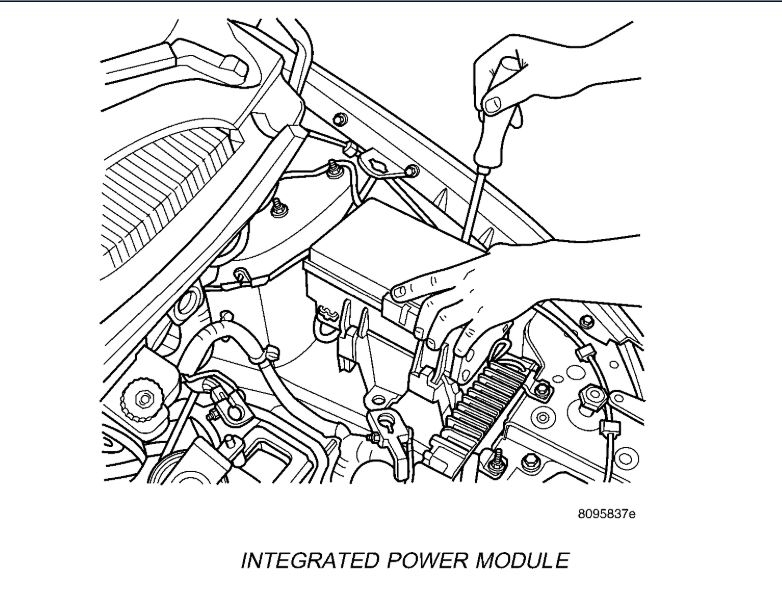 4. Using a flat-bladed screwdriver, twist the Integrated Power Module (IPM) bracket retaining latch outward to free the IPM from its mounting bracket