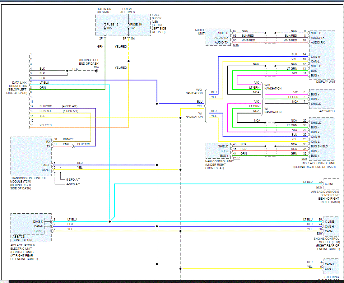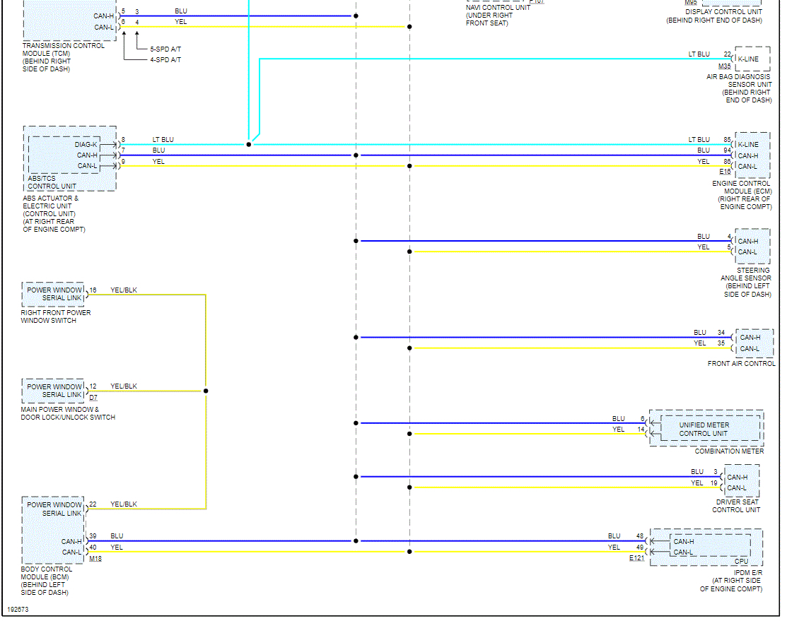 Pics 3 and 4 are the wiring schematic for the CAN bus system. Note there are only three wire colors used, light blue, blue, and yellow. Also, note they are all connected via dashed lines. That indicates they are all connected in a network and able to communicate via those few wires.