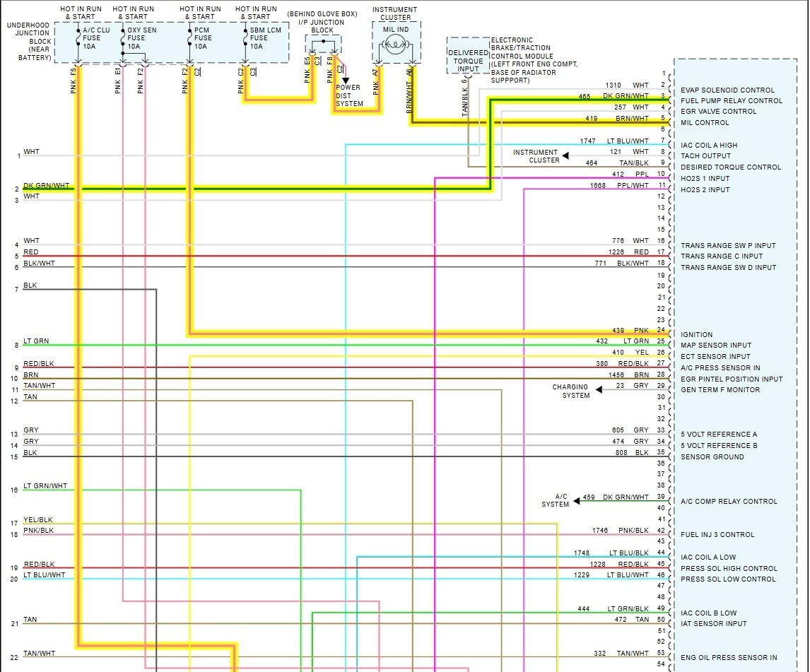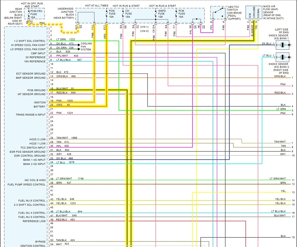 I've been in the process of replacing my motor and transmission on my car listed above Ultra and now that everything is back together when I turn the key there's nothing, no crank, no start, no fuel pump. So, I hooked a scan tool to the vehicle and there is also no communication with my computer. I have looked everywhere for a pinout diagram that lists everything for my PCM and what power wires go where but I have been unsuccessful at finding something.