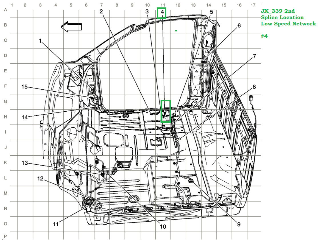 Here is the 2nd Splice location for the Low-Speed network. Under the passenger seat with all dark green wires.