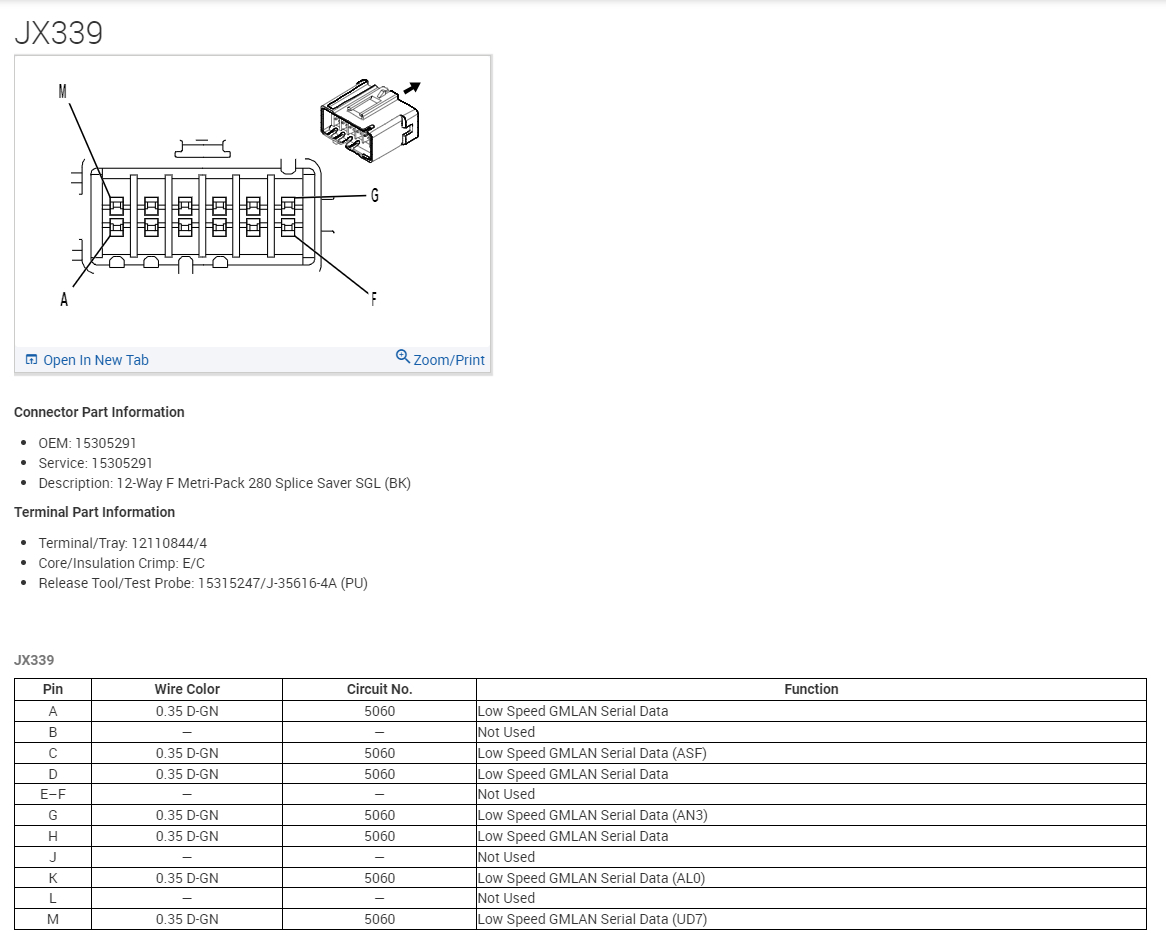 Take look at this video, it explains the GMLAN low speed network operations and what might be going on with your vehicle, having no voltage might mean that it's shorted to ground.