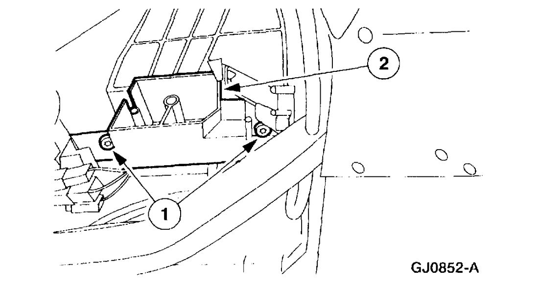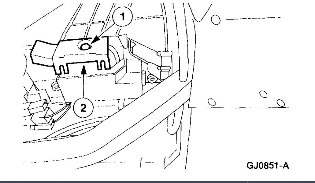 5. Disconnect the parking brake release handle from the lower instrument panel steering column cover.