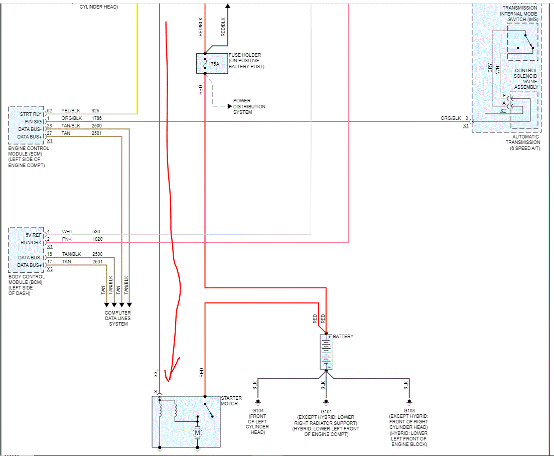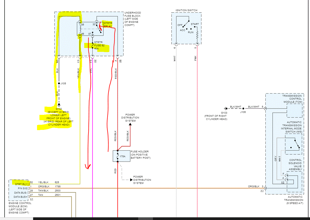 I attached the starting system wiring schematic below for your reference. I had to cut the pic in half, but I did overlap them so you can follow from one to the next.
