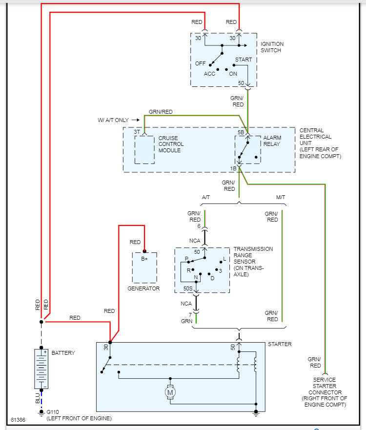 Couple things. Take a look at the wiring diagram. We need to check voltage at the starter on the two wires. You should have 12 volts on both wires when cranking the engine. If you don't have voltage on the red wire then we need to check wiring to the battery. If you don't have it on the green/red wire then we need to go before the range sensor and see if there is voltage coming in. If not, keep working backwards until you find voltage.