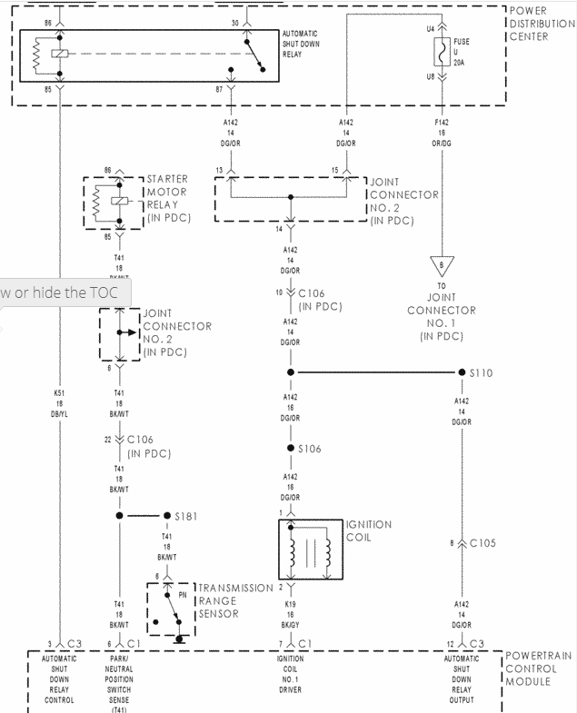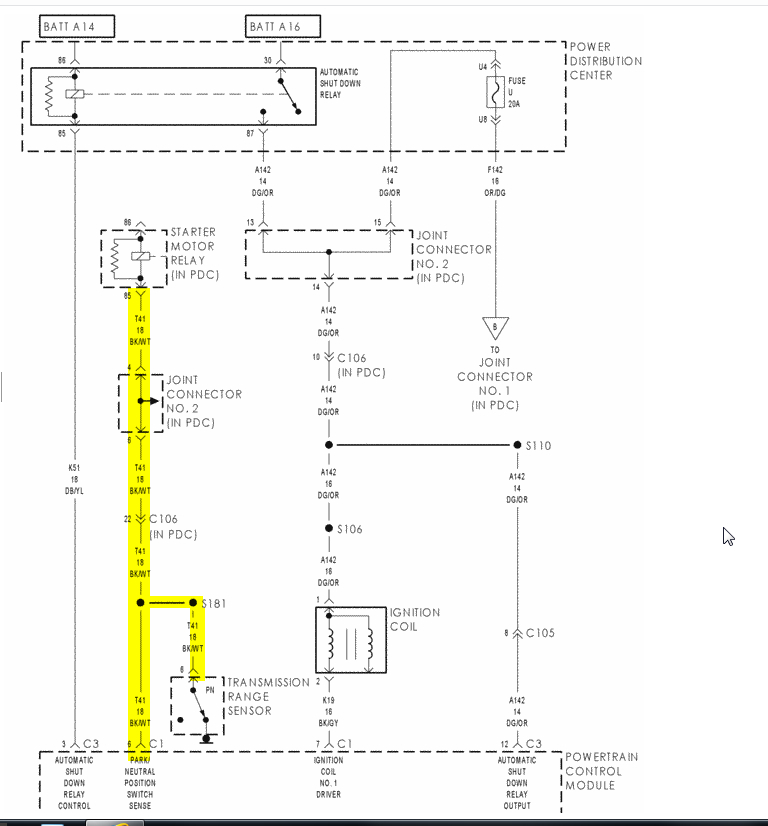 To get specific, we need to monitor the voltage on the T41 circuit because I suspect there is nothing coming out when trying to start the engine or the TRS. If this is the case then this will need to be repaired.