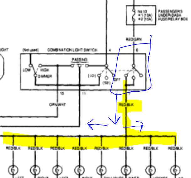Dash lights and taillights and vanity lights are not working. Headlights work, turn signals work, brake lights work. I checked all fuses on the left, right, under the hood. All okay. I hear a relay clicking from passenger side fuse box when taillights, headlight switch is turned on. I tried the bypass that I read about on connector of instrument cluster and did not solve problem. I'm wondering if perhaps it is the on column light switch but need a little more information on testing it. I am capable with a multimeter. Thank you, Ed