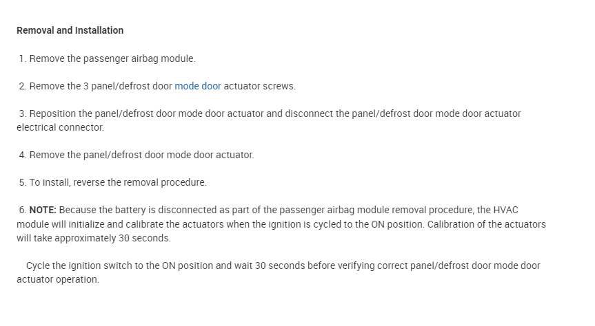 On your vehicle there are two mode door actuators. One for the floor and other for the panel/defrost.