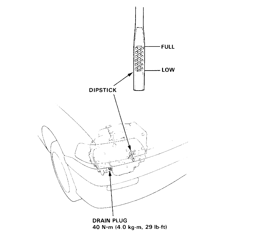 2. Reinstall the drain plug with a new washer, then refill the transmission to the full mark on the dipstick.