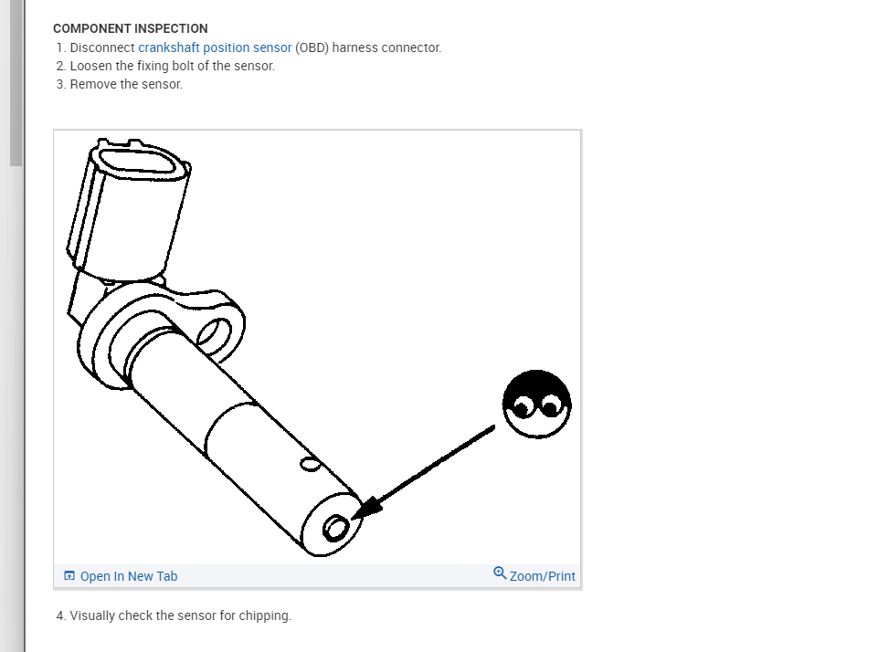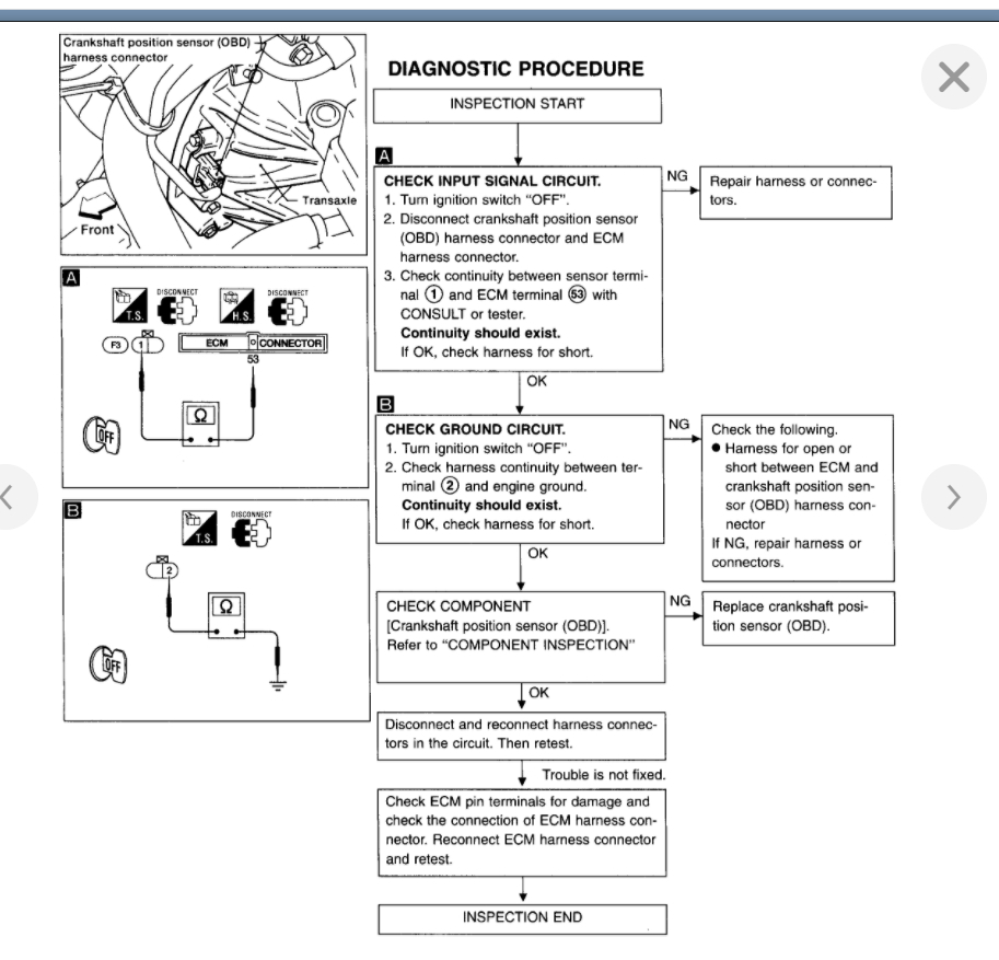 However, below is the testing from the manual that we need to run through to find out for sure that this is a crank sensor.