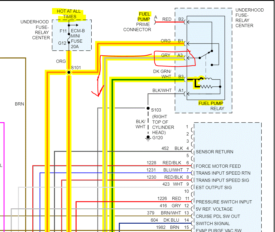 Replaced fuel pump and fuel pump relay; check all the fuses, checked grounds, and still not getting power to fuel pump. Even on relay still not getting power for prime from prong 85 on the relay but when I add direct power to the pump from 87 to 30 the pump powers and sends fuel, I can hear it upper the hood but still nothing when fuse in in truck with key on.
