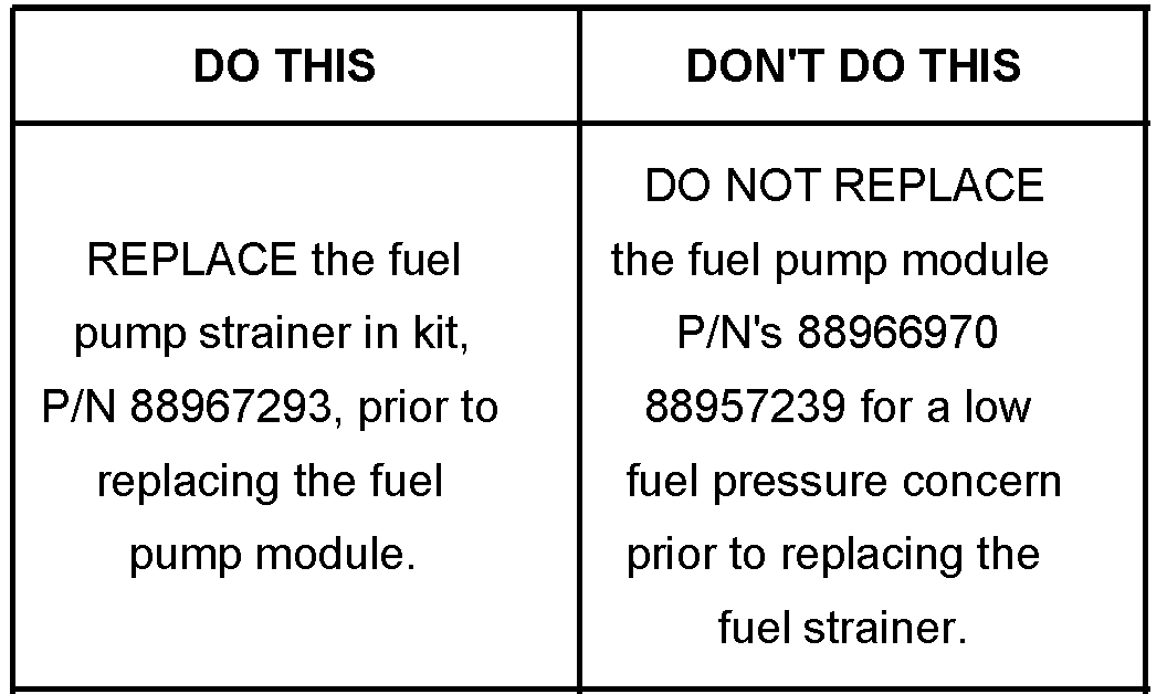 Vehicle Hesitates, No Start, Lack of Power, Low Fuel Pressure (Test Fuel Pressure and Replace Fuel Pump Module Strainer)